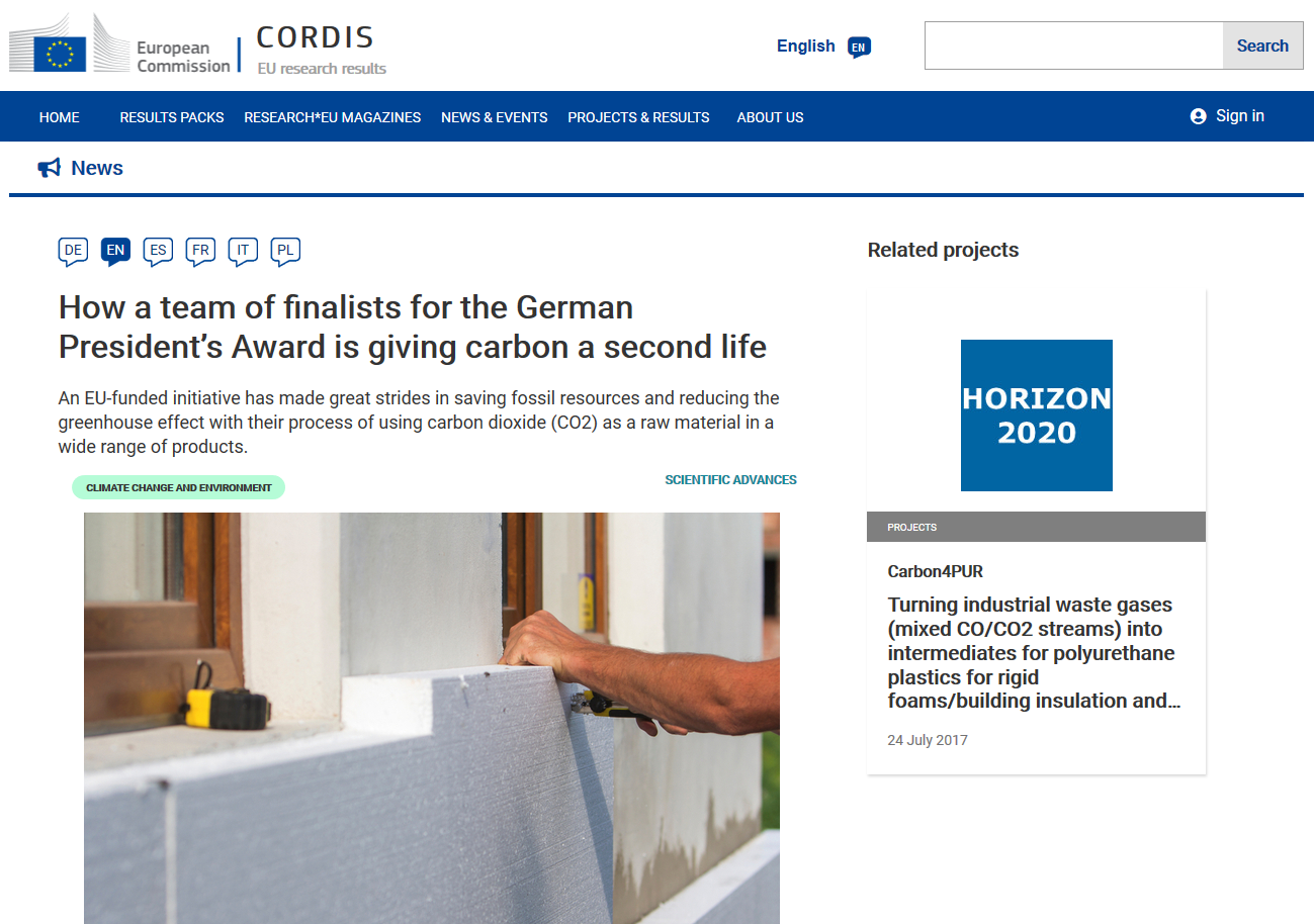 Carbon4PUR has been elected as the Project of the Month of February 2020 by the editorial board of research*eu, CORDIS’ magazine highlighting results from the projects funded by the EU’s framework programmes for research and innovation.